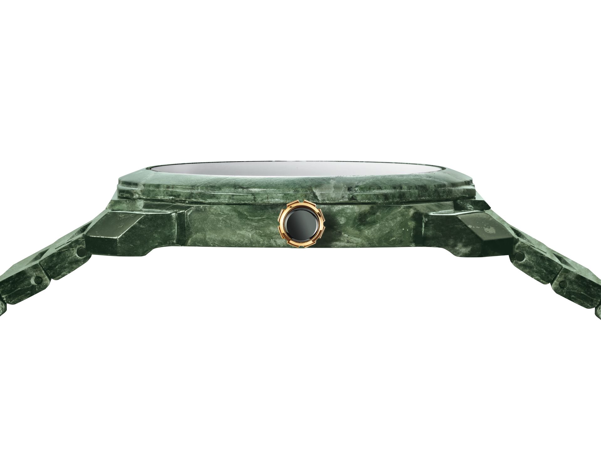 DLC titanium case covered with a layer of 0.5mm of Verde di Alpi green marble — 110 facets